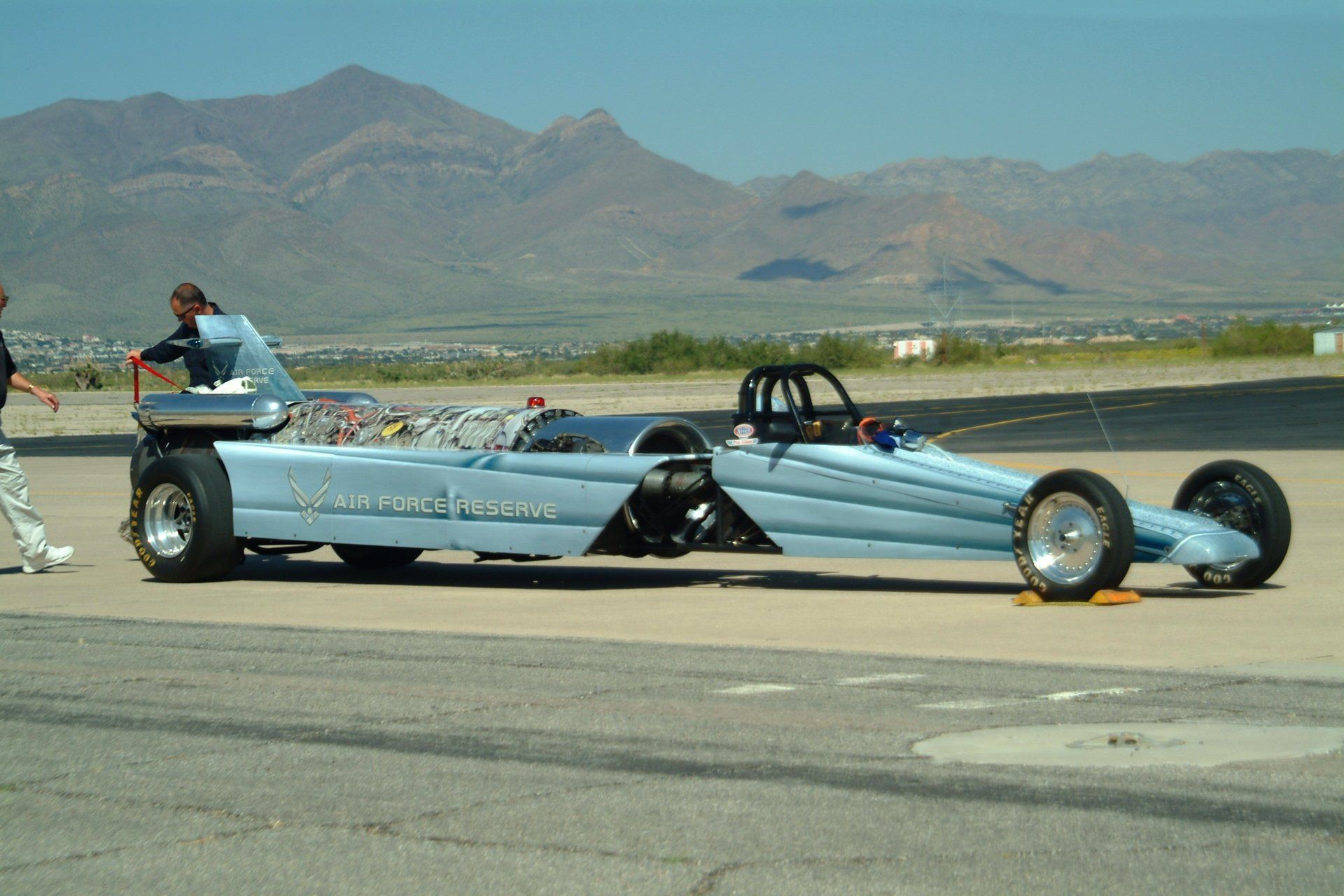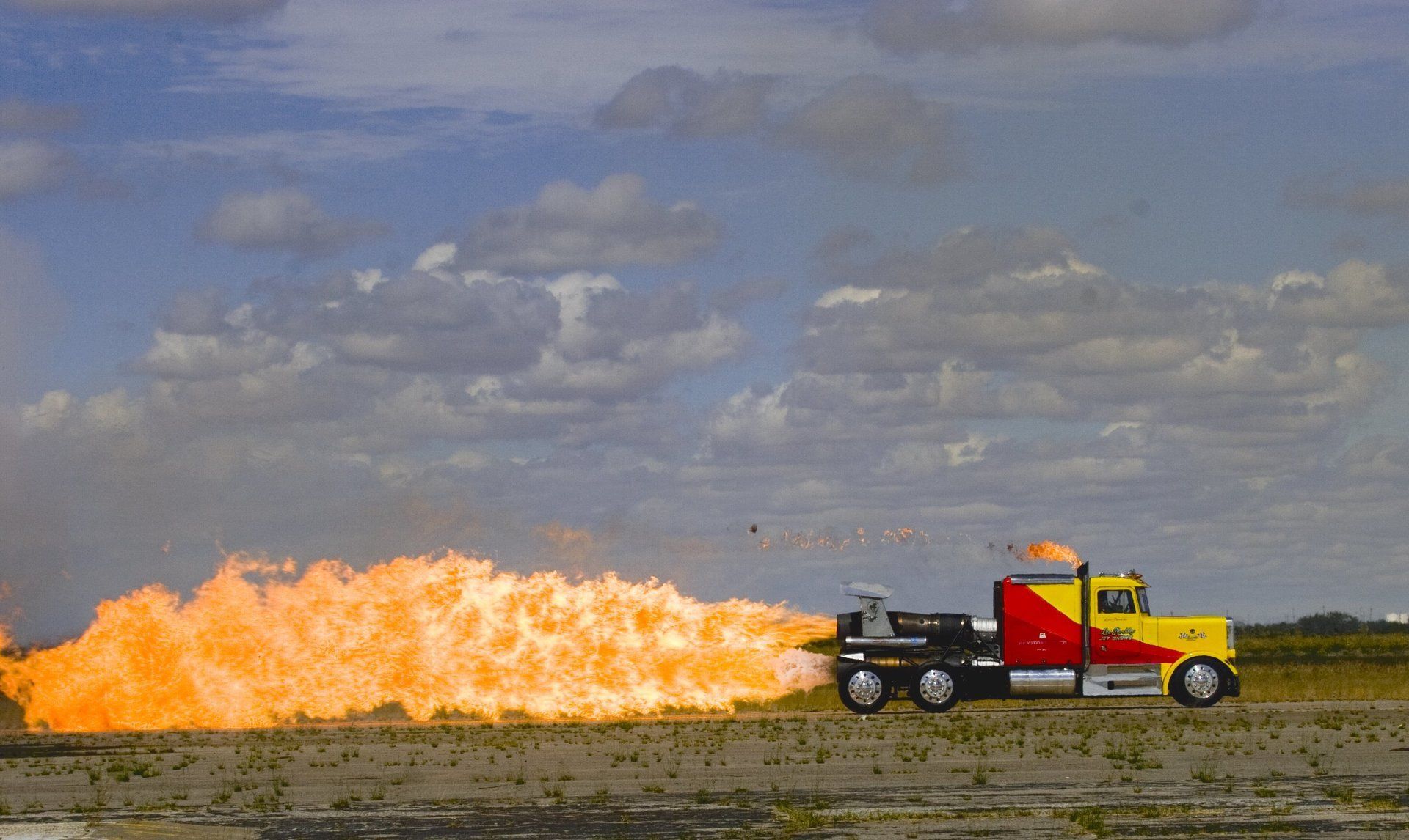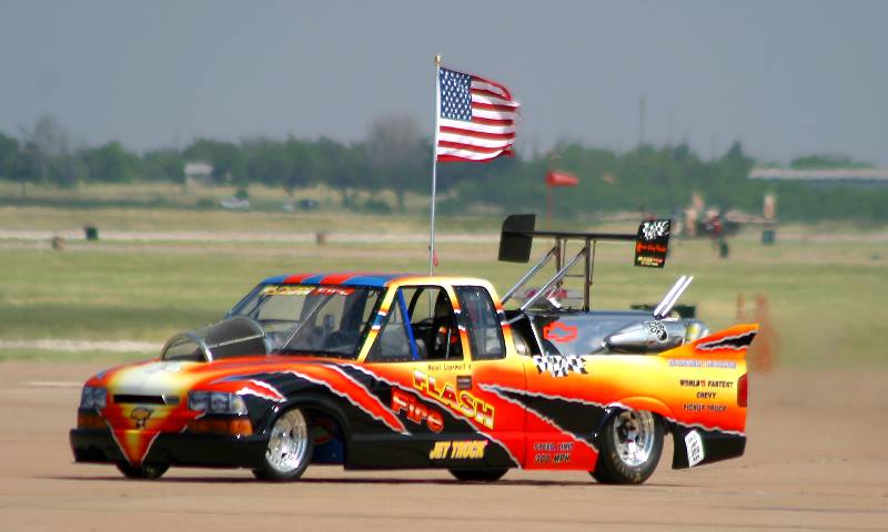 What do you do when a 700 hp, turbo and nitro street rod isn't enough? "Jet turbine" baby..! Yes, it's weird driving past gas stations on the way to an airport FBO for JP-8 jet fuel. These ground-pilots design, engineer, build and run a gauntlet of regs to req'd permits. So enjoy enjoy these specialized and exciting demos. Often, coordinated with an aircraft in the form of a ground-and-air race.