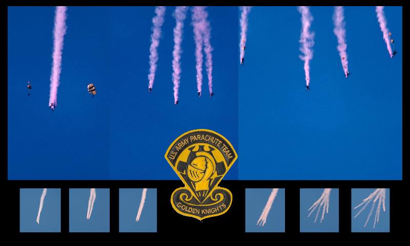 Vol 1: This volume features the Golden Knights at various airshows and events over my span of coverage. My ASG Team and I were in the air, on the ground, off site and everywhere the team or its members went. This volume shows their formation, solo, tandem, break away, smoke-On, baton transfer, flag jumps and more. It always amazed me how I could take a vantage 20 ft away from the Big-X target, knowing they wouldn't miss. I hope you enjoy the precision of their demos, and appreciate that it represents what our Airborne troupes incur in theater for our freedom.