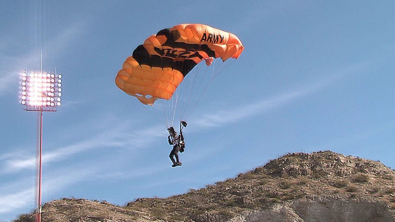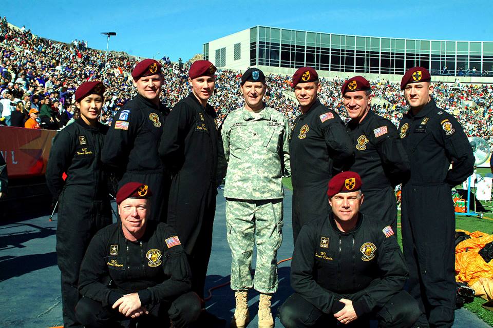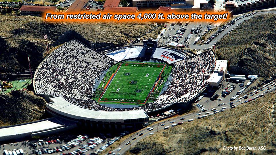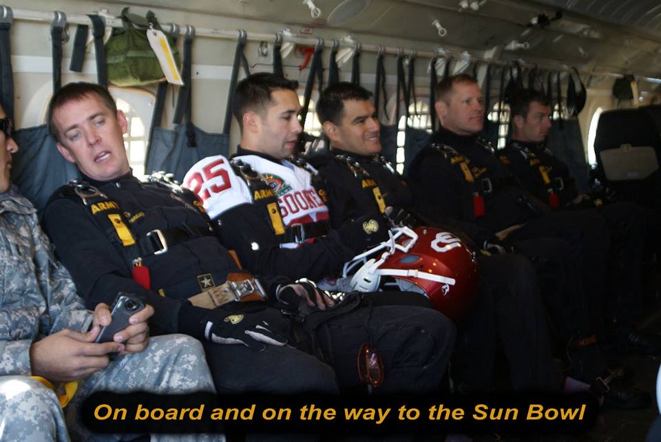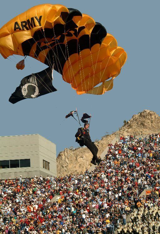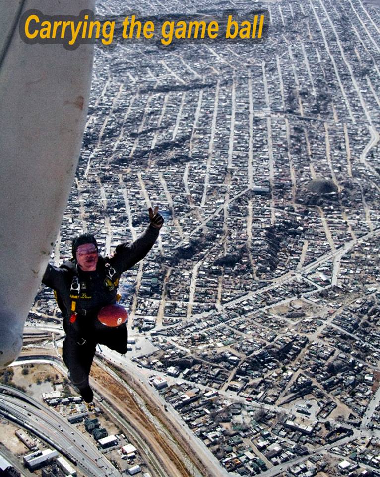 Vol 3: For several years in a row, I coordinated with the GK to cover the Sun Bowl jumps (a nationally televised Holiday event). I assigned ASG photogs to the jump plane, ICE Black Hawk helo and to key areas of the football field itself. Having cleared DHS and Sun Bowl security, ASG photogs covered the US flag and "game ball" jumps from the GK plane to the 50 yd line LZ, and then the "coin toss" to start the game. Later, I was within 10 ft of Rhianna for the national anthem, and other celebs and VIP's for the half-time performance and more. Our coverage required an understanding of commercial network protocols, precise timing and logistics. If we' weren't on point, the opp would have been lost. But not a problem for ASG. We're used to coverage fighter jets at 700mph within 200 ft. Yeah-ha>