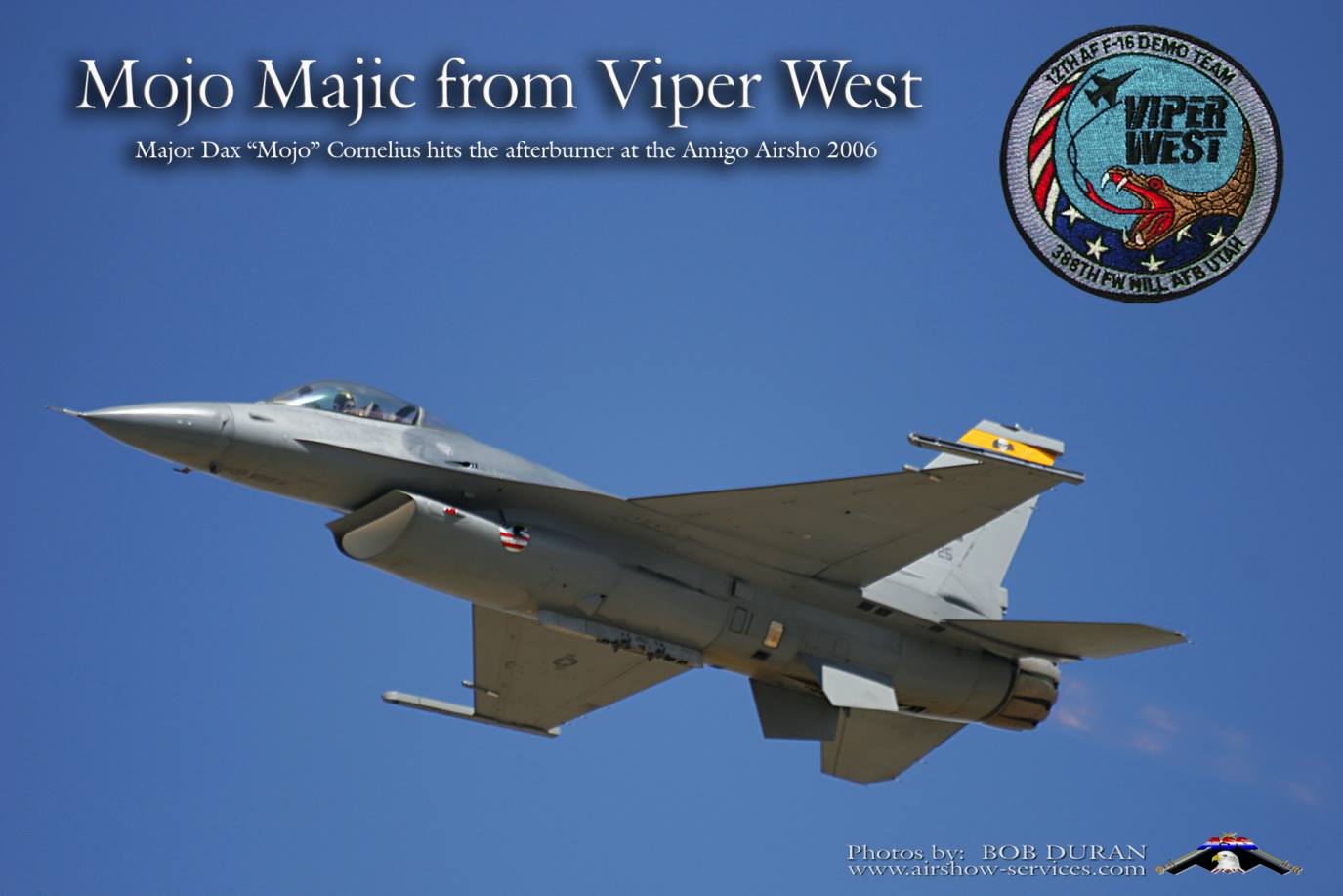 remembers many good times with F-16 Viper East and West Coast Demo Teams. I have tons of pics to add, so check back from time to time. Until then, enjoy these and some "rare" shots of Lockheed Martin's test pilot's F-16 Demo. I'd never seen anything like it. And some lucky dude had the back seat. It was a low to the deck, non-stop full afterburner demo. Just imagine.