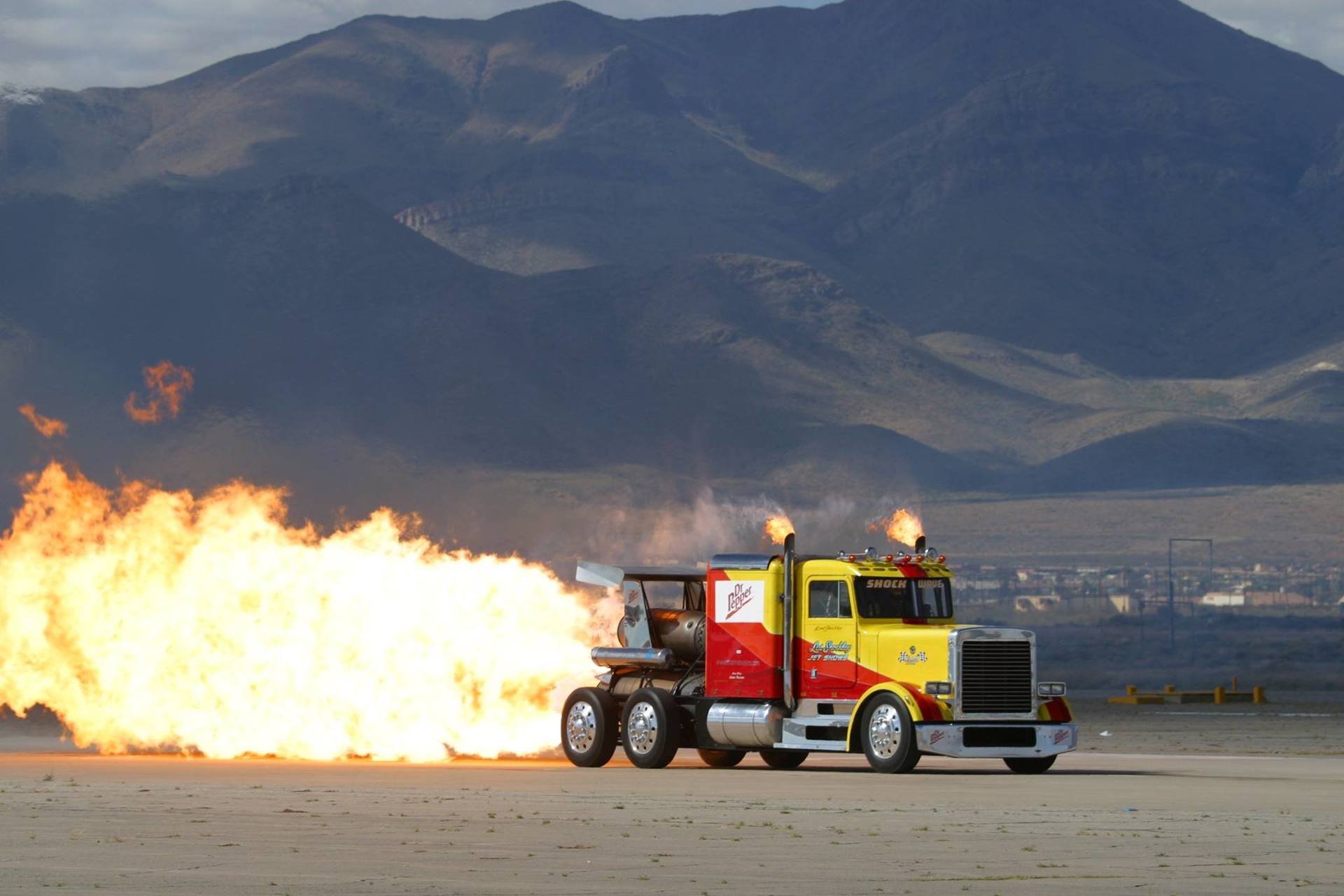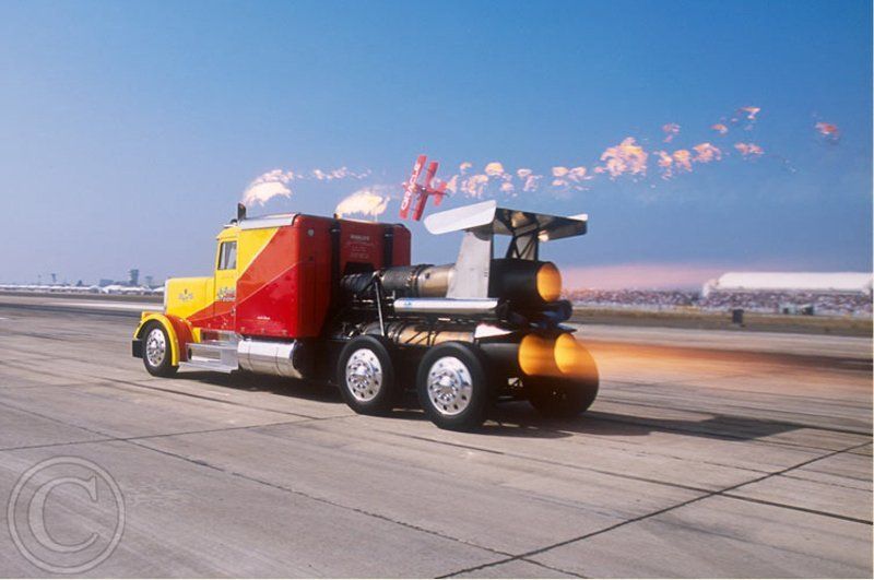 What do you do when a 700 hp, turbo and nitro street rod isn't enough? "Jet turbine" baby..! Yes, it's weird driving past gas stations on the way to an airport FBO for JP-8 jet fuel. These ground-pilots design, engineer, build and run a gauntlet of regs to req'd permits. So enjoy enjoy these specialized and exciting demos. Often, coordinated with an aircraft in the form of a ground-and-air race.