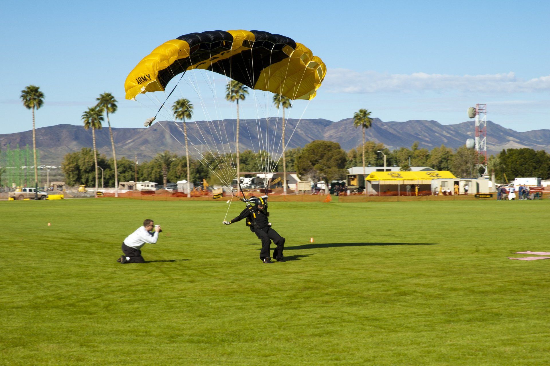 Introduction: Where do I begin? My history goes back way before I founded ASG. Back to my Pa, NJ, NAS-Oceana, Ft. Bragg days, Since then, ASG became good friends with these incredible guys, whose only down time is during flights to-and-from events. Constantly sought out for airshows, they're also in demand to jump into major Bowl Games, NASCAR races, National Holiday, recruitment, ceremonial and tons of other events. So many that they have two jump (Gold and Black) and one competition teams. You've all seen them open events with "Flag", "smoke 'ON", precision "formation" and "solo" jumps. Our friendship afforded us countless photo opps on board ALL of their aircraft all over the USA. And ASG was invited to their preseason training at YPG (Yuma Proving Ground). Man was that fun. With over 50GB of content, my biggest challenge is deciding what to put into this Gallery. I hope you enjoy my selections and this most memorable ASG experience. I will always remember and love my Golden Knights. God Bless You Guys,