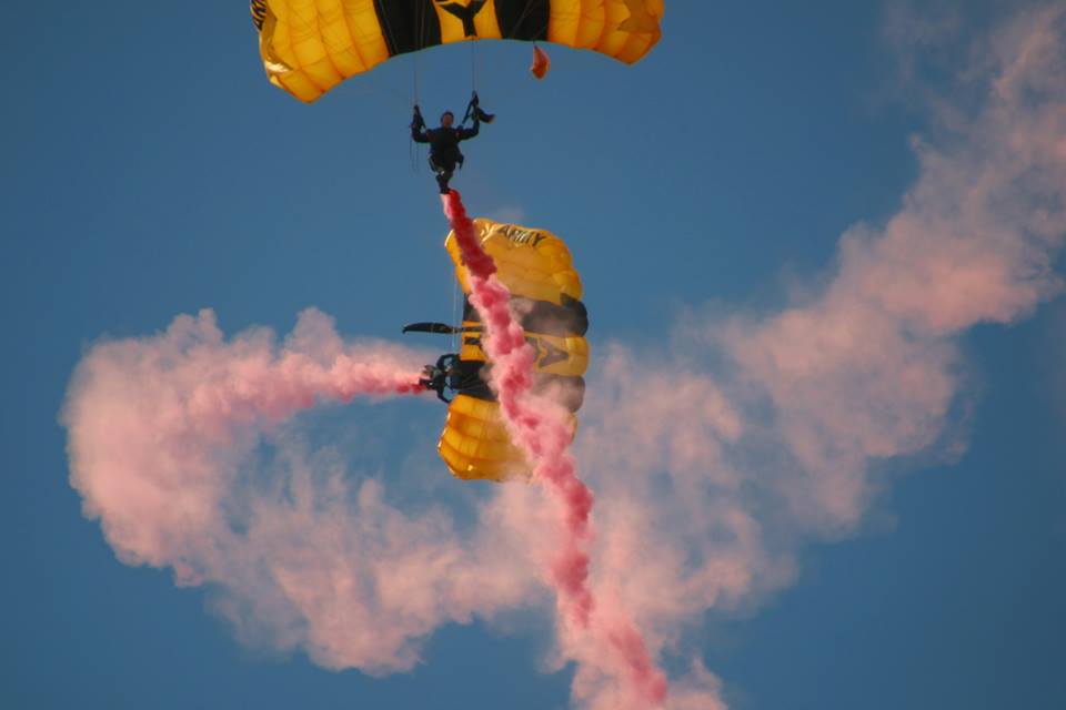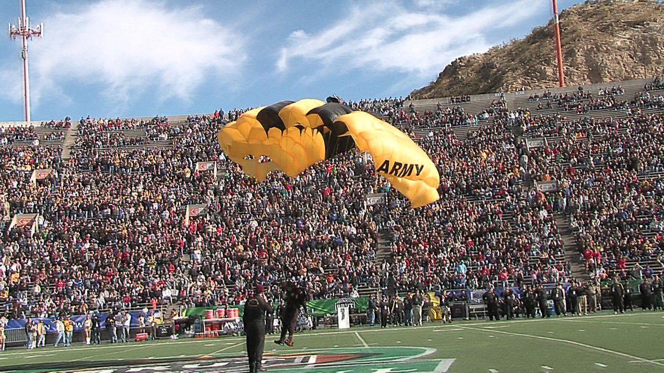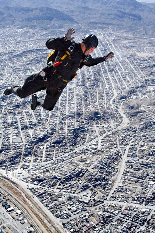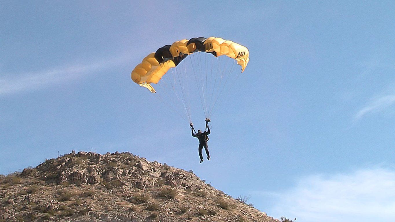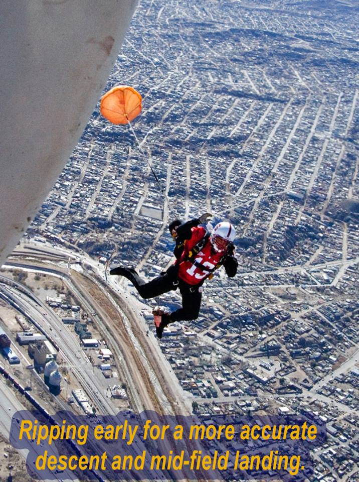 Vol 3: For several years in a row, I coordinated with the GK to cover the Sun Bowl jumps (a nationally televised Holiday event). I assigned ASG photogs to the jump plane, ICE Black Hawk helo and to key areas of the football field itself. Having cleared DHS and Sun Bowl security, ASG photogs covered the US flag and "game ball" jumps from the GK plane to the 50 yd line LZ, and then the "coin toss" to start the game. Later, I was within 10 ft of Rhianna for the national anthem, and other celebs and VIP's for the half-time performance and more. Our coverage required an understanding of commercial network protocols, precise timing and logistics. If we' weren't on point, the opp would have been lost. But not a problem for ASG. We're used to coverage fighter jets at 700mph within 200 ft. Yeah-ha>