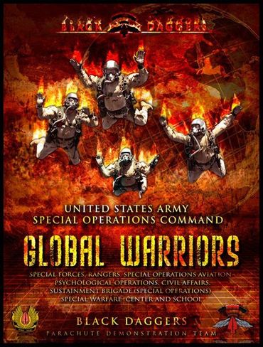 Vol 5 features the US Army's Special Forces jump team known as the "Black Daggers". ASG developed a friendship with this team watching their precision canopy work at airshows throughout the West. I was especially honored when the Team presented me with the actual poster, that won the "most creative and innovative artwork" advertising award at the International Council of Airshows (ICAS). Like the other jump teams, these best-of-the-best do their best jumping behind enemy lines. Special Forces means special missions, which most likely, we will never hear about. But what makes front page news.