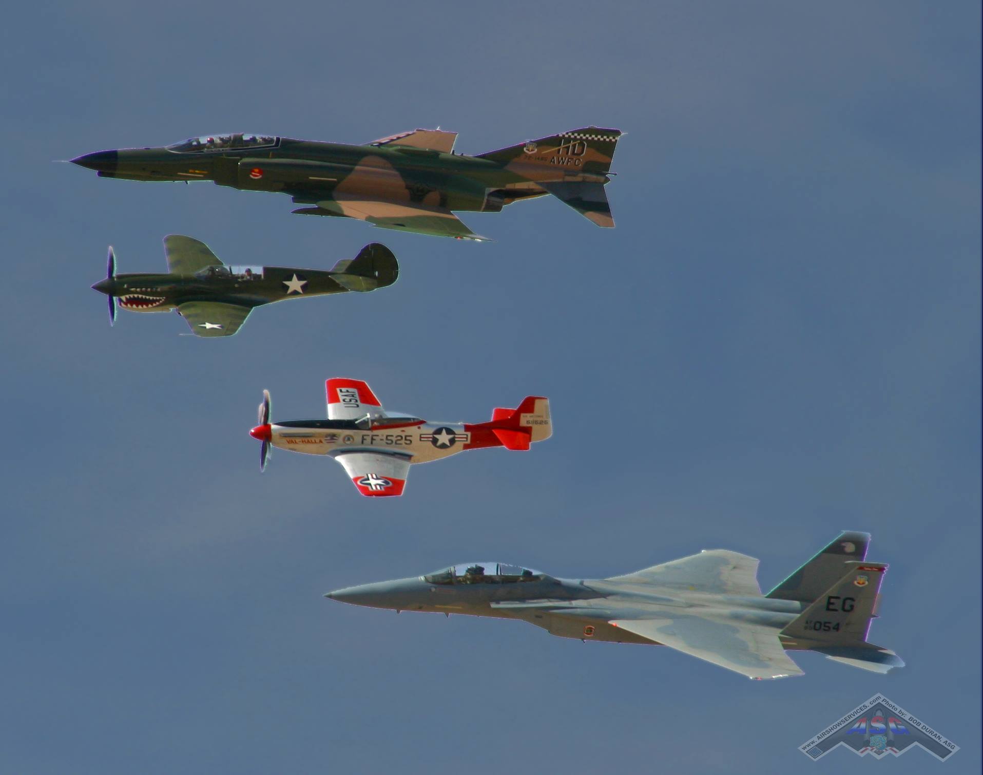 Vol 1 is a legacy program, which honors military aircraft, missions and crews with narrated formation flights at airshows, ceremonial and sports events, including Superbowl LII. ASG was invited to the week long Heritage qualsfor exclusive, unrestricted, on the ground and air-to-air photo opps of a lifetime. We removed the gunner's window and the tail cone of a B-24, so we could take photos and video of HF aircraft maneuvering-in close. ASG thanks Bondo (F-15), Snort (F-86), Frank (P-51), Reggie (P-51), Geoff (F-16), Tuna and Shamu (F-4) and A-10 teams. My heart skips every time I see a Heritage Flight.