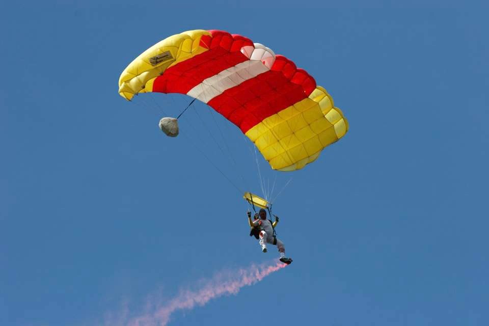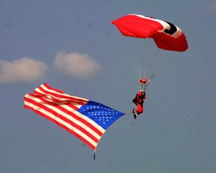 Vol 7 (cont'd) This grouping features all other jump teams. Small to mid-sized airshows and events can't always book the more popular teams due to scheduling conflicts or event budget limitations. So very often, venues call on other jump teams to open their events with Flag, game ball and smoke jumps. Teams such as the precision USN Leap Frogs, commercial and local skydiving club teams step up to fill the void. I wish I had content to give the Leap Frogs their own volume. But in the lack thereof, I will focus on the others, who are always eager to do the job and show their stuff. I am embarrassed that I did not register who these pics are of, but whoever they are, they did a beautiful job.