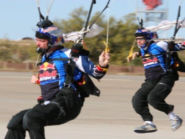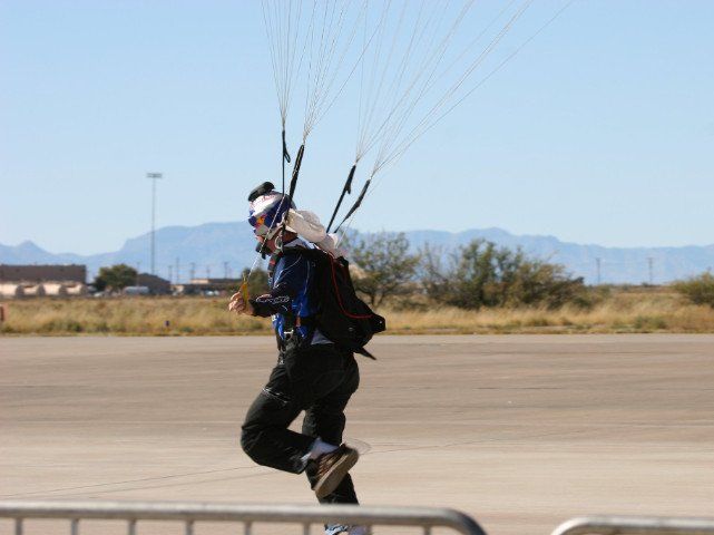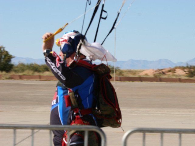 This subsection features the Red Bull jump team. As a commercially sponsored team, these guys appear at a wider variety of events than our military teams. I was busy taking video so only a few pics. These guys did high speed landings, zooming past me within a few feet, right and left, with shroud strings zooming withing inches as I froze in space. Otherwise, it would have been a 50 mph collision. This team is composed of former Airborne as well as world winning competition jumpers. As stated, not as easy to find. So if they are your event, make it a point to run to the ropes and watch these guys do their thing. It doesn't get much better. And that's NO