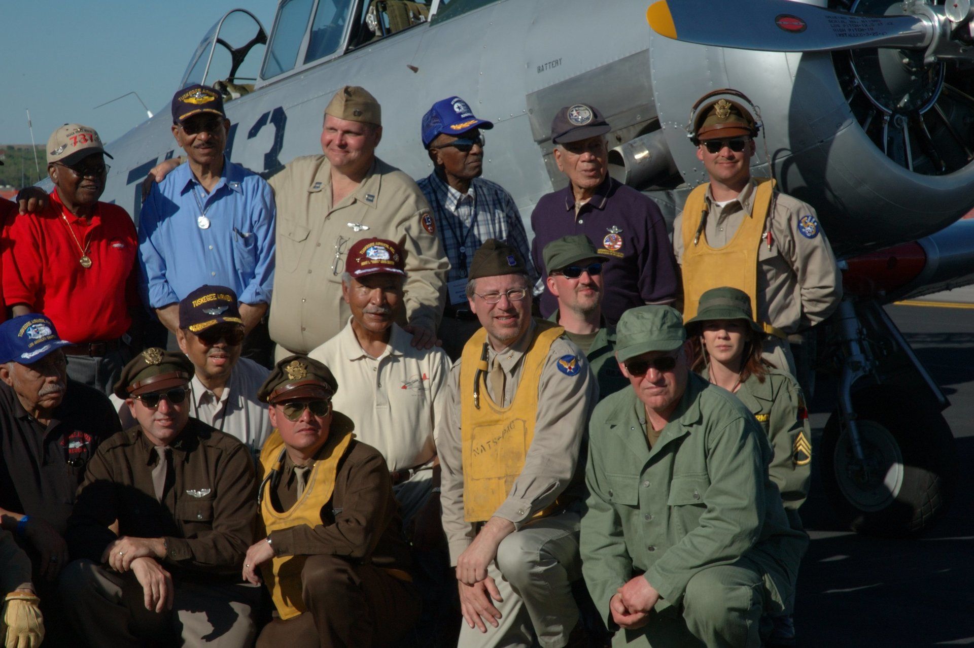I would have never heard the Tuskegee story, if it had not been for Steve Cowell, a commercial airline and aerobatic pilot, turned Tuskegee advocate. Steve bought and restored a North American T-6 for his upcoming airshow act. As it turned out, that T-6 was the only original Tuskegee T-6 Texan in existence. Steve's respect for the Tuskegee legacy and his desire to become an aerobatic pilot were enjoined and he became the "accidental historian" (click button below). Steve styled his airshow act to honor the TA legacy. His narrated "Double Vee" act (click button below) performed before millions of airshow spectators each year, And Steve was always available to talk to fans, students, historians and the uninformed like me. His act garnered mass media interest, resulting in tons of articles and TV documentaries. A feature film "Red Tails" with an A-list cast was released a few years later. Please check it out.